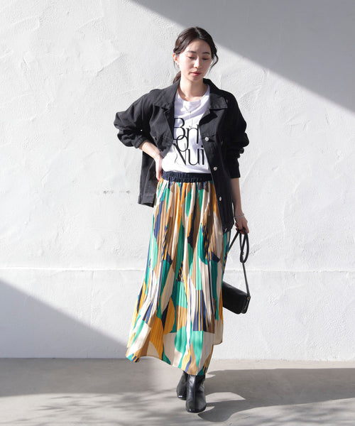 幾何柄プリーツスカート[2/6発送予定]