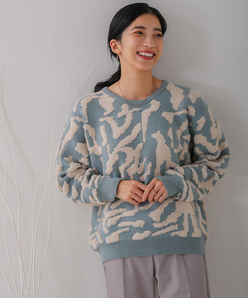 ゼブラ柄のニットで大人っぽい&クールな印象に。 1枚で着映えするのでコーデの主役にも! 長すぎない着丈なのでスカートやパンツにも合わせやすいです。