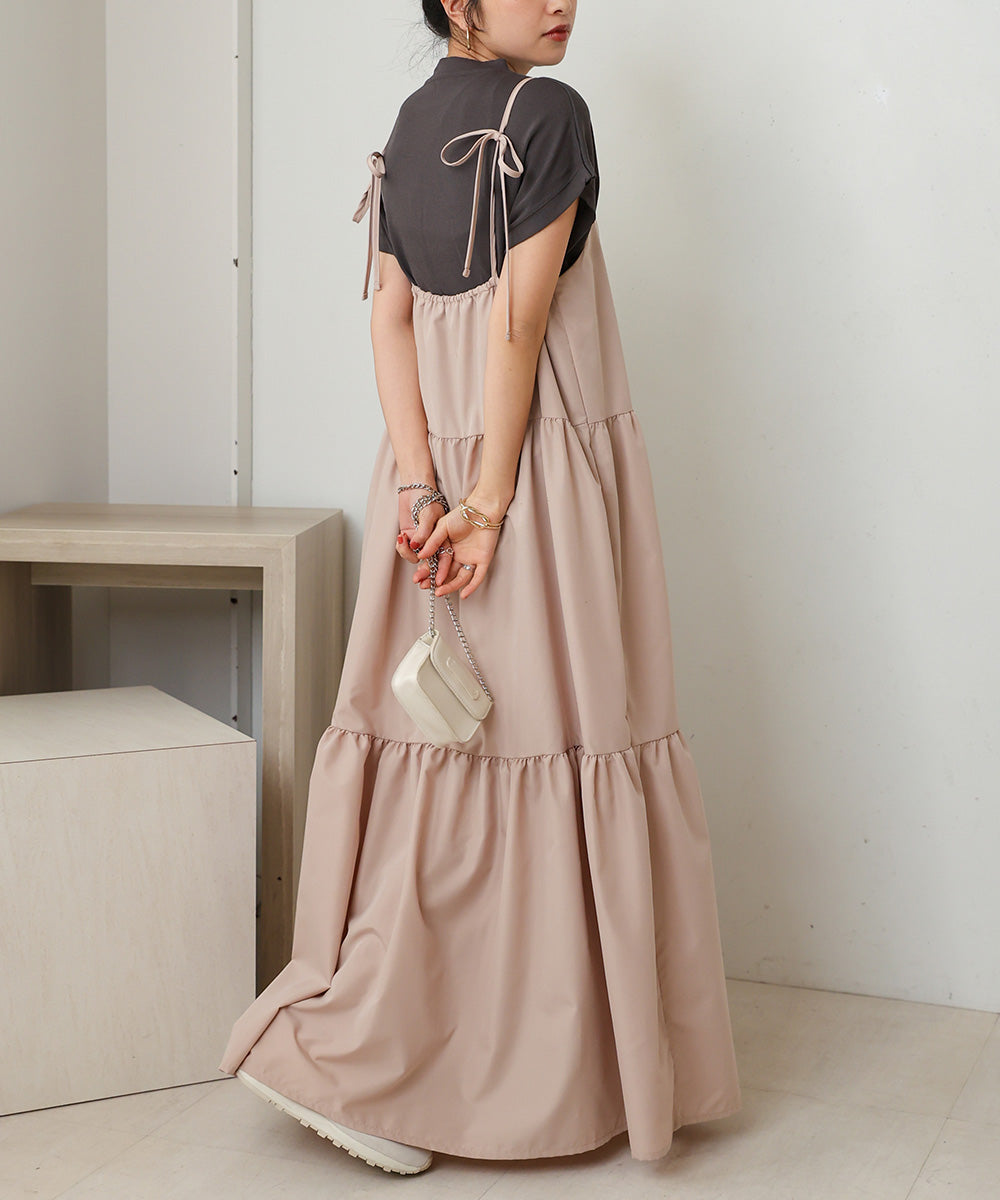 【低身長向けサイズあり】リボンストラップティアードワンピース