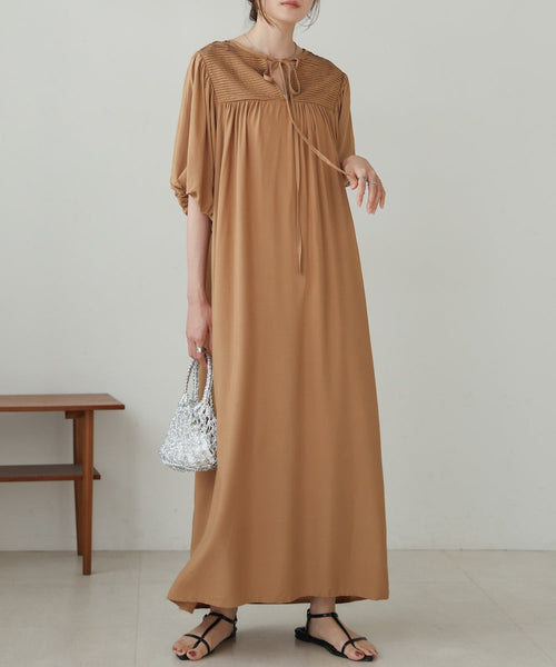 デコルテのプリーツディティールが目を引くワンピースが登場!?