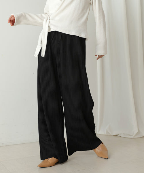 くっきりしたプリーツ加工が全体をすっきりと見せてくれます!しなやかなポリエステルとポリウレタンの混紡で、皴になりにくく着心地も抜群です。