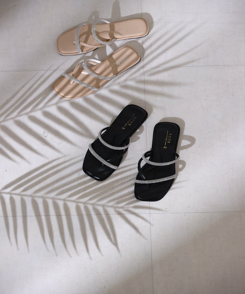 ■POINTラインストーンが華やかで、アクセサリー感覚で履ける大人なサンダル。