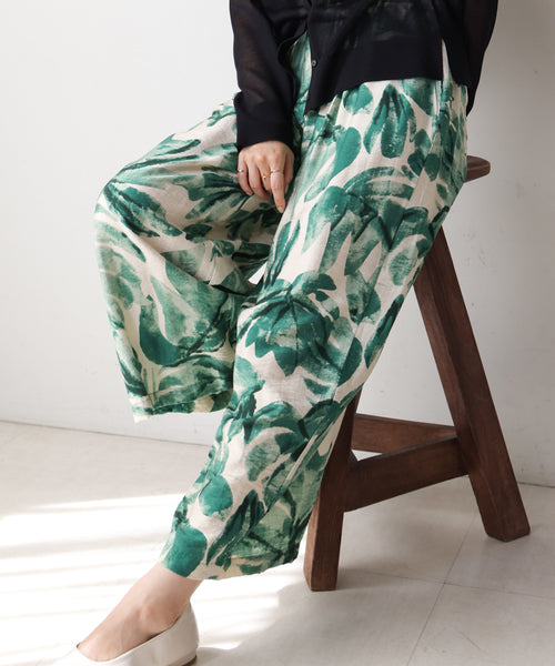 大胆なボタニカル柄とレーヨンの清涼感がこれからの季節にピッタリなワイドパンツが登場!リラクシーなシルエットが大人の余裕を感じさせます。ウエストはぐるりゴムでイージーな着心地。バックポケットデザインなので、トップスをインしてもヒップラインを気にせずお召し頂けます。もちろん サイドにも便利なポケットをオン。暑い季節に向けてテンションを上げてくれる1枚です。