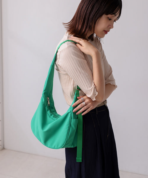 シンプルで超軽量。日常使いにぴったりなショルダーバッグ。 ファスナーは大きく広がり出し入れしやすく、広めのマチがあります。 外側にはサイドポケット。内側にポケットが付いており、収納力も抜群! カーブを描いたフォルムのおかげで、斜め掛けの時もボディラインにフィットします。 ショルダーは長さ調節可能。肩掛けや斜め掛けなど、コーデによって使い分けできます。 日常使い、旅行やレジャーなど、いろんなシーンで大活躍します。