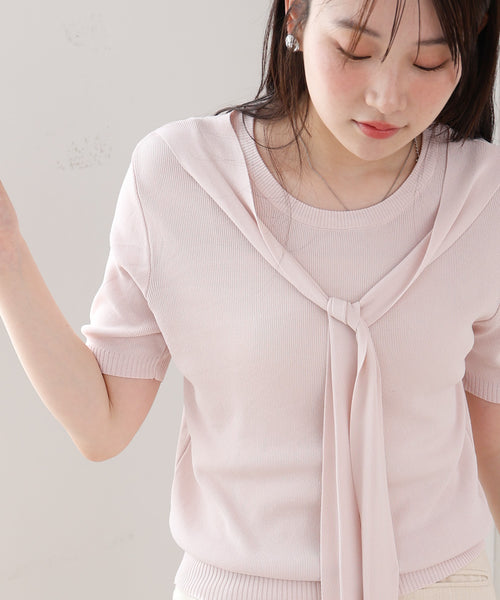 レイヤードデザインドッキング サマーニットトップス