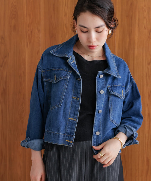 程よい張り感のあるデニム素材で、カジュアルながら上品な印象に。 ショート丈なのでバランスよく、ワイドパンツやロングスカートとも相性抜群です。 さらに落ち着きと品のあるブラックデニムならカジュアルすぎず今のスタイルにぴったり。 きれいめにも合わせやすく、毎日のコーデにさっと羽織るだけで“大人の余裕”を演出してくれます。