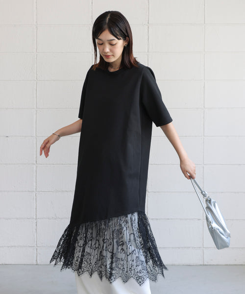 程良い厚みのあるポンチをベースに、裾のレース使いで抜け感もバッチリ!
