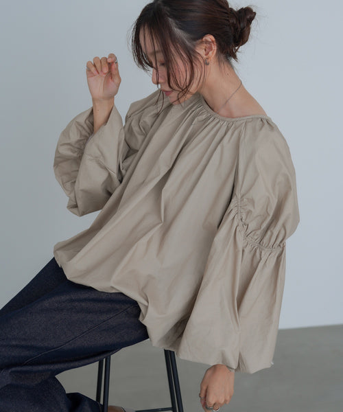 ふんわりと広がるシルエットが華やかな、バルーンギャザーブラウス。フロントにたっぷりとギャザーを寄せることで立体感が生まれ、動くたびに揺れるエアリーなシルエットを楽しめます。バルーン仕様のデザインが甘すぎず、大人フェミニンな印象を叶えるのも魅力。1枚で存在感のあるスタイリングが完成します。カラーはオフホワイト・ベージュ・ブラックの3色展開でどれもシンプルなボトムスと合わせても華やかに見える万能ブラウスです。