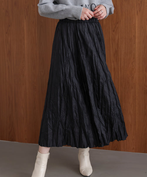 華やかさと心地よさを兼ね備えた、大人のための一枚。 光をやさしくまとったようなサテンの質感が、歩くたびに軽やかに揺れて印象を高めてくれます。ウエストはゴム仕様だから、気負わずリラックスしてはけるのもうれしいポイント。残暑が残る秋口から、重みのあるニットやアウターを合わせたい真冬まで、ロングシーズン活躍してくれる頼れるスカートです。今季のおすすめは、重厚感あるトップスとのコーディネート。サテンのツヤと相まって、今年らしいバランスを楽しめます。きれいめにもカジュアルにも寄せられるので、オン・オフ問わずデイリーに取り入れやすいのも魅力。大人のワードローブに一本あると、間違いなく着回しの幅を広げてくれるアイテムです。