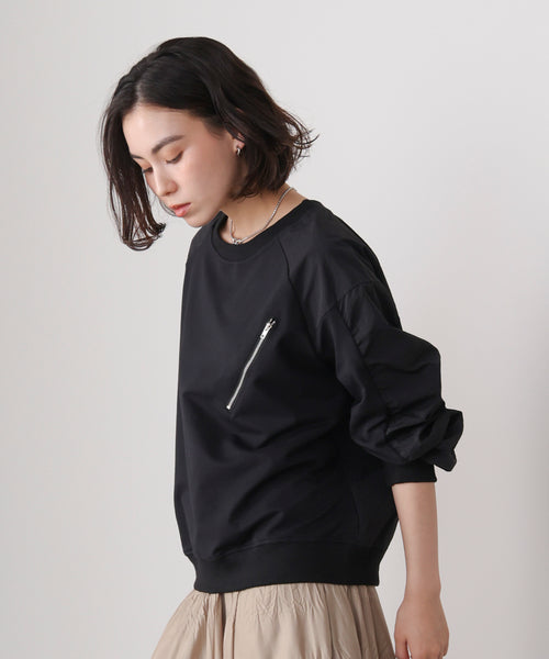 袖ギャザー異素材プルオーバー