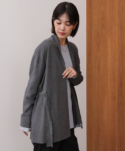 オンにもオフにも頼れる、大人のための“きれいめカジュアル羽織!ボタンレスの着流しデザインで、インナーを選ばずラフに羽織れる1枚!ヒップにかかるミドル丈が合わせやすく、気になるラインもさりげなくカバー。ウエストは絞れる仕様だから、気分に合わせてシルエットのアレンジも◎カジュアルだけど、どこかこなれた印象に仕上がります♪ 1枚あると秋冬の着こなしにグッと幅が出る、優秀なライトアウターです!