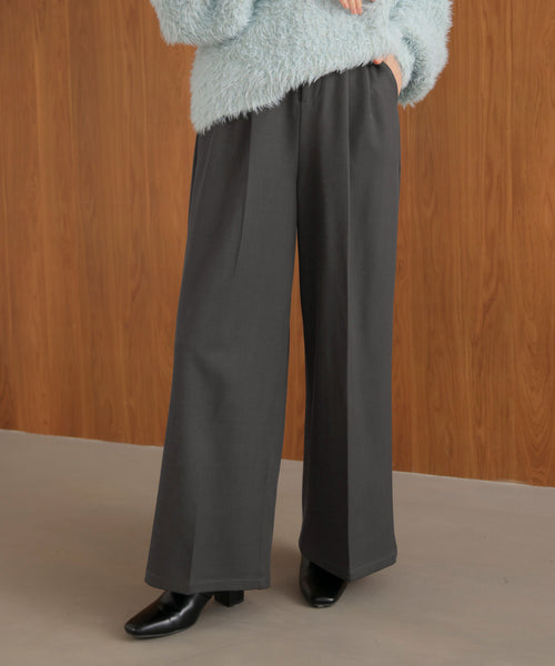 軽くて扱いやすいポリエステル100%。シワになりにくく、忙しい日でもアイロンレスで着やすいデイリー素材!落ち感のある質感がツータックをきれいに見せ、体型をスマートにカバーしてくれます◎