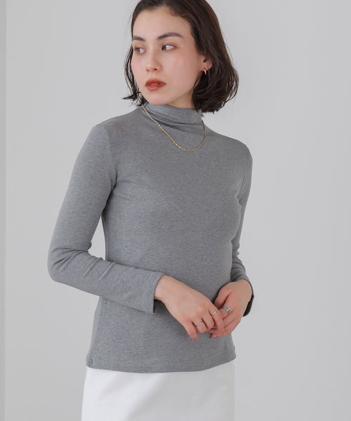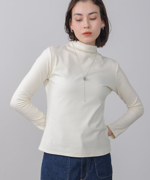 見た目はすっきり、着るとしっかりあたたかい一枚。裏起毛でももたつきにくく、重ね着しても着ぶくれしないのが魅力です。ほどよく首元を包むボトルネックが、コーデに抜け感をプラス。ジャケットやニットの下に仕込んでも、これ一枚で着ても様になります。思わず色違いでそろえたくなる、使いやすい5色展開も嬉しいポイント。毎日の装いに自然となじむ、大人女子の定番インナーです。