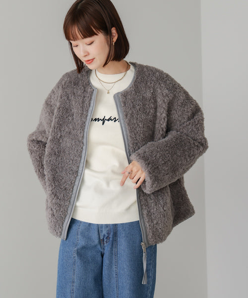 ノーカラーで首元がすっきり見え、抜け感あるデザインが魅力的です。程よい厚みで着ぶくれしにくいところも高ポイント。合皮のさり気ないパイピング使いで、高級感と大人のこなれ感も演出してくれます。