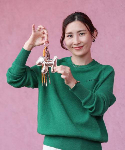 大ぶりで存在感抜群のバッグチャーム!ぷっくりとしたモチーフがポップで可愛らしく、テンションがアガること間違い無しです。どんなバッグに合わせても馴染みやすいクールなブラックと、華やかさとラブリーな雰囲気を併せ持ったブロンズの2カラーをご用意いたしました。