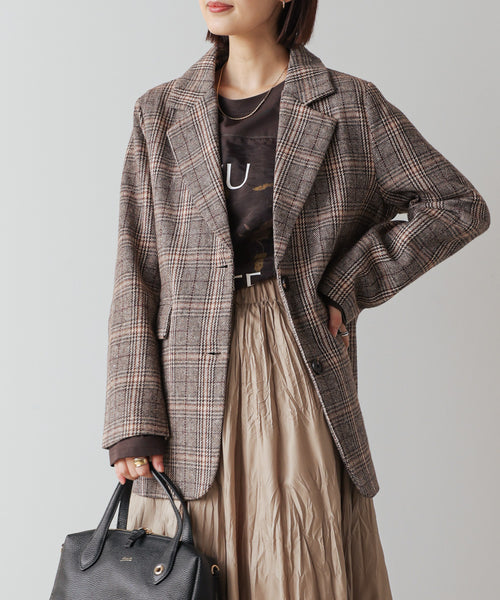 トラッドなチェック柄ジャケットは、羽織るだけで秋冬のスタイリングを格上げ。 シーズンムード高まるブラウンベースのカラーで、トレンド感もばっちり。