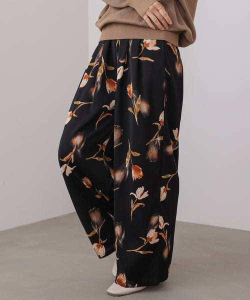 秋の気分を盛り上げてくれる、クラシカルなフラワープリントのワイドパンツ。シックな色合いに映える花柄が、大人の装いに華やかさをプラスします。程よいワイドシルエットだから、すらりとした美しいラインを演出。重ためのニットやシンプルなトップスと合わせるだけで、一気に今年らしいスタイリングが完成します。ウエストはゴム仕様なので、ラクなはき心地とすっきり見えを両立。日常からちょっとしたお出かけまで活躍する、頼れる一本です。