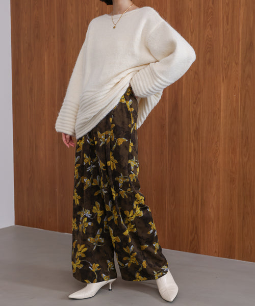 秋の気分を盛り上げてくれる、クラシカルなフラワープリントのワイドパンツ。シックな色合いに映える花柄が、大人の装いに華やかさをプラスします。程よいワイドシルエットだから、すらりとした美しいラインを演出。重ためのニットやシンプルなトップスと合わせるだけで、一気に今年らしいスタイリングが完成します。ウエストはゴム仕様なので、ラクなはき心地とすっきり見えを両立。日常からちょっとしたお出かけまで活躍する、頼れる一本です。