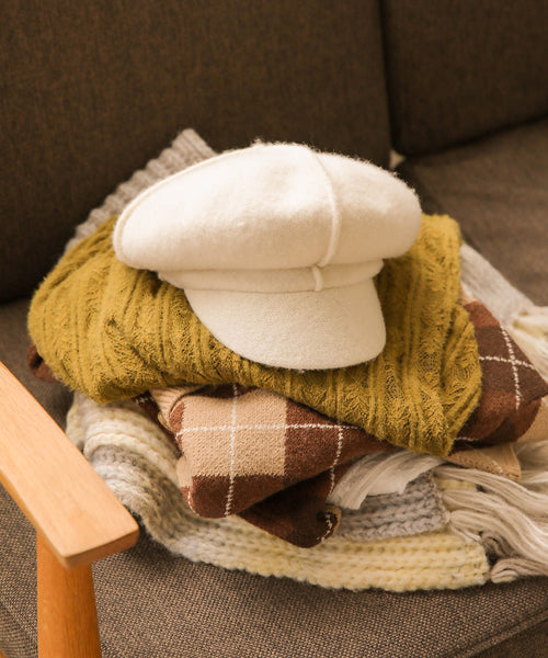 毛90%配合でとても暖かい帽子。ベレーとキャスケットのアソートでお好きな形を選んでいただけます。立体的なクロスラインがポイントになっているのと、深いかぶり感で小顔効果が期待できます! いつものスタイリングに取り入れるだけでモードな上級者スタイルが完成します!