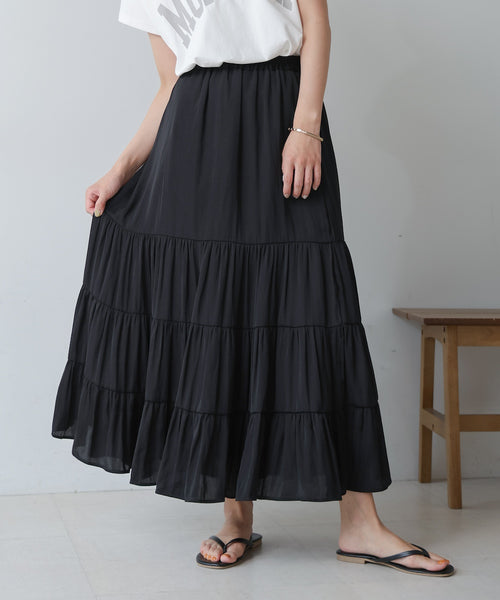 シャリ感のある生地がカジュアル過ぎず、シワを気にせずお手入れしやすい スカートに仕上がりました。