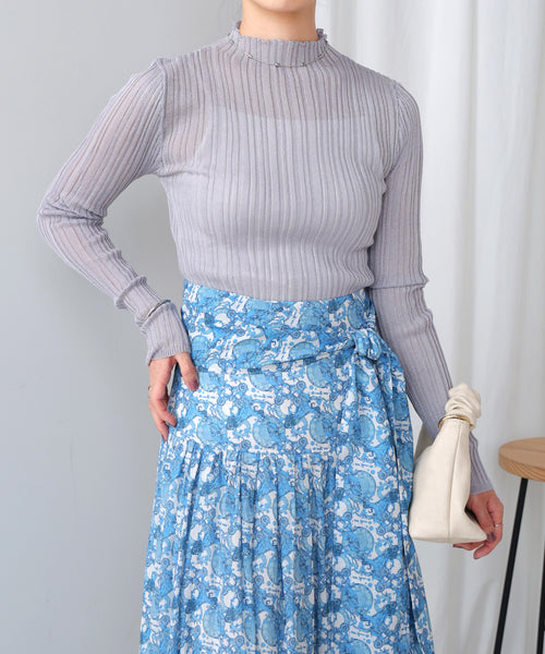 トレンドのシヤーニット。 ボトルネックにランダムワイドリブの編地が程よくシャープなラインになります。 メッシュとは違い、編地の透け感があまりないのでシヤーニットでも挑戦しやすいデザインです。
