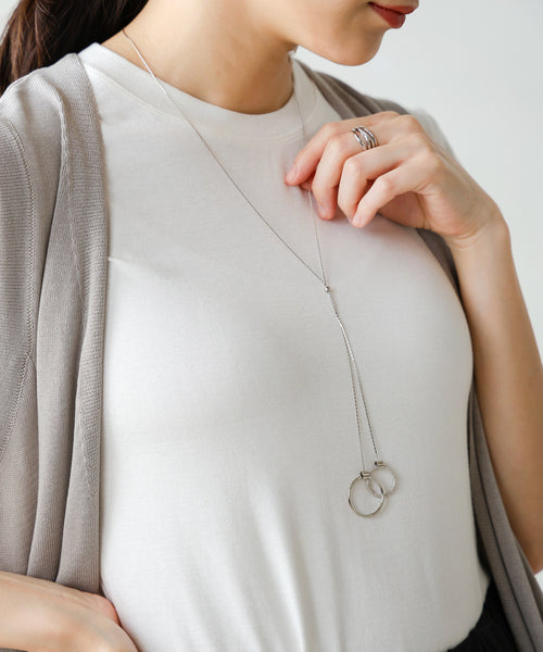 ■POINT シンプルなリングとキラッとラメ感のような手触りの コーティングをしているリングがついたネックレス。