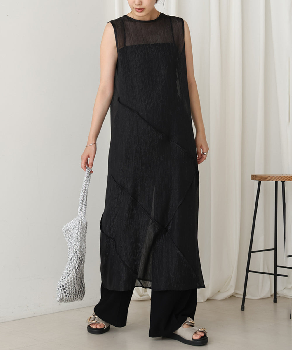 スタイリングに一癖プラスしたい時に取り入れたいシアーワンピース。 ペチコートがセットになっているので、1枚着でもパンツとレイヤードもして頂けます。