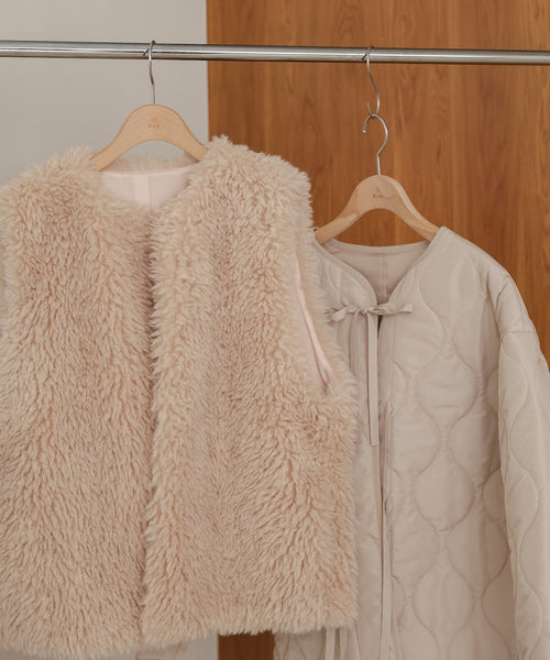 ベストはふんわりとしたシープライク素材で立体感が生まれます。