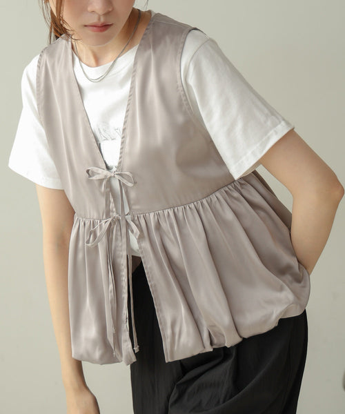 【前後2WAY】サテンペプラムバルーンベスト