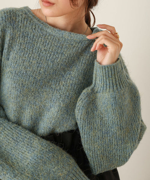ニュアンス感漂うMIXニットでお作りしたプルオーバーです。フェミニンなムードのぽわんとしたお袖に ウエストの華奢見えを叶える適度なショート丈で、様々なコーディネートとマッチします。