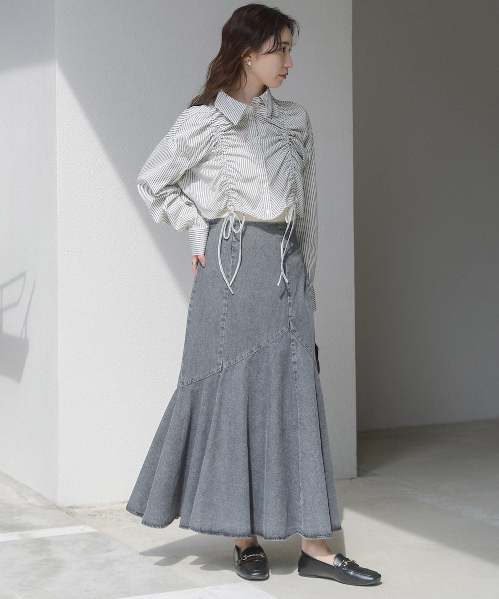 トレンドのマーメイドスカートに、デニムが登場。トレンドのマーメイドデザインが、華やかで女性らしいラインを引き立てスタイルアップも叶えてくれます。