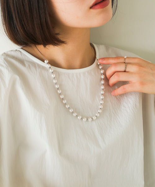 定番のパールにアジャスターを付けた使いやすいネックレスです。 長さの調節が可能なのでオケージョンにも普段使いにも使用でき、上品で大人っぽく仕上げました。
