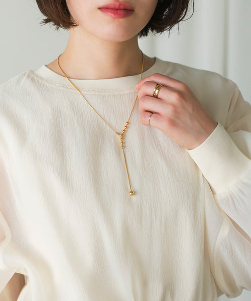 トップにフックを付けたデザイン性の高いネックレスです。 チャーム部分がYになるので首元をスッキリ見せてくれます。フックを付ける位置で印象が変わるのでその日の気分や コーディネートするお洋服に合わせて楽しめます。