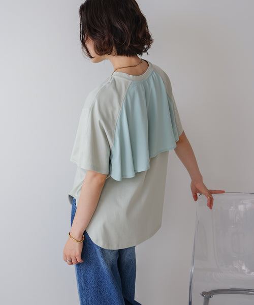 シンプル&華やか!フリルデザインTシャツ シンプルなフロントデザインに、後ろのフリルがアクセントになった一枚。さらっとした綿素材で、これからの季節にぴったりの軽やかな着心地。ラウンド裾で後ろが少し長めになっているので、リラックスしたスタイルにもぴったりです。シンプルな中にも華やかさを感じる、女性らしいTシャツです。