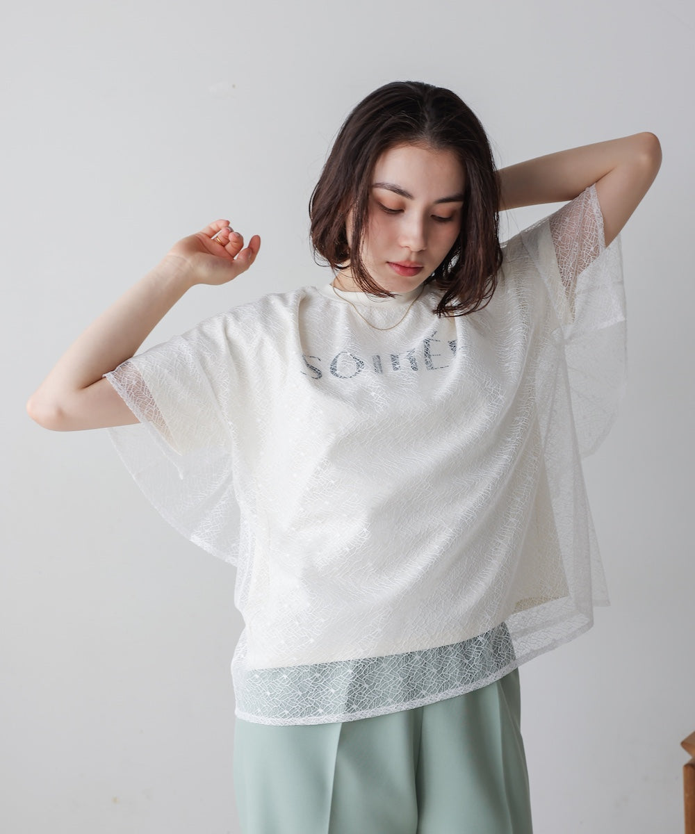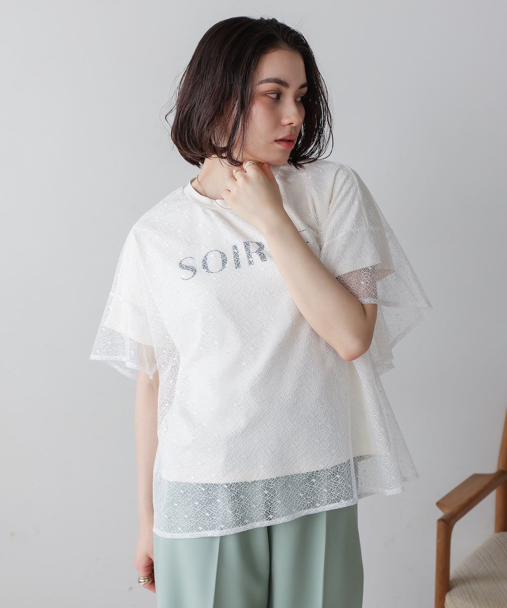 レースレイヤードロゴプルオーバー