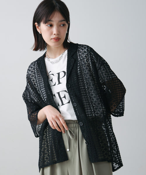 シアー感が魅力のレースシャツ。ゆったりとしたシルエットでリラックスシ印象もありつつ、上品さも演出します。羽織としても、一枚着としても活躍する万能アイテム。コーディネート次第でカジュアルにもフォーマルにも着こなせるのが嬉しいポイントです。軽やかな素材感で春夏シーズンにぴったり!!スタイルに抜け感をプラスする一枚です。