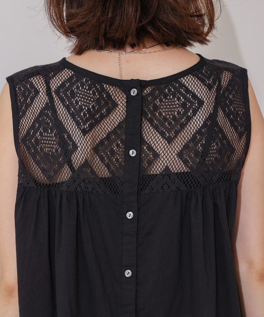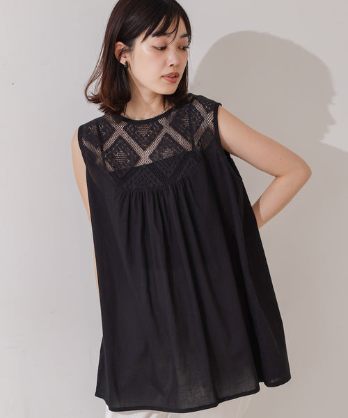 柔らかな綿素材に、繊細なレースをあしらった胸元が女性らしさを引き立てる1枚。ノースリーブデザインで涼しげな着心地ながらも、お尻がしっかり隠れる丈感で体型カバーも叶います。パンツにもスカートにも合わせやすく、デイリーからお出かけまで幅広く活躍する万能トップスです。