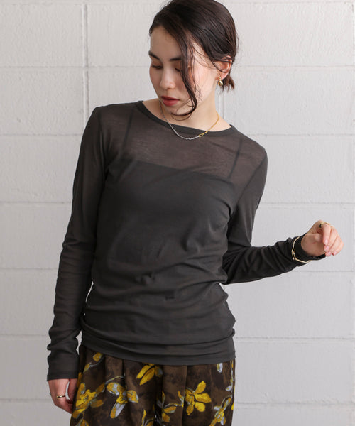薄手でシャリ感のあるカットソーで綿素材なのでケアもしやすくインナーとしてもレイヤードアイテムとしても活躍してくれる。 ストレッチ性抜群のフライスコットンを使用しているので、直接肌に触れるストレスもなく、着心地もとても良い。