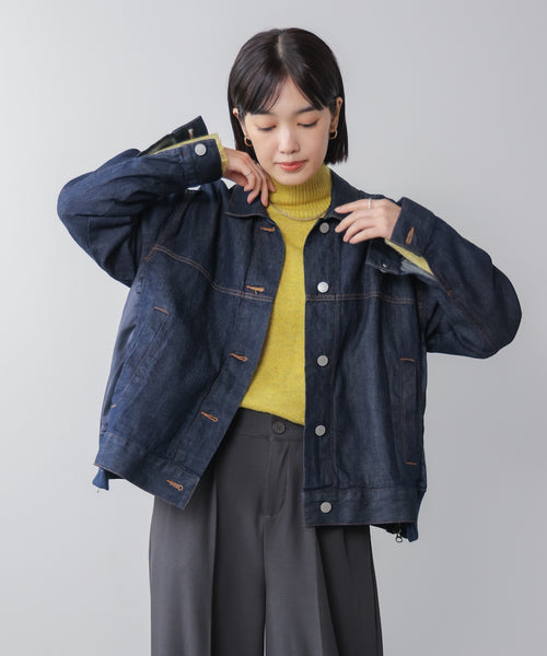 上質な素材を丁寧に組み合わせてつくった、特別感のある“ドッキングデニムジャケット”。軽いのにしっかり暖かく、季節の変わり目から冬の始まりまで長く活躍してくれます。異素材ミックスならではの立体感があり、着るだけでこなれた雰囲気に。シルエットはすっきり細身で、デニムなのにラフになりすぎず、上品さをキープできるのが魅力です。普段のカジュアルに合わせても、きれいめスタイルに取り入れてもバランス良く決まり、羽織るだけで、おしゃれ上級者の空気をまとえる、大人のためのデニムジャケットです。