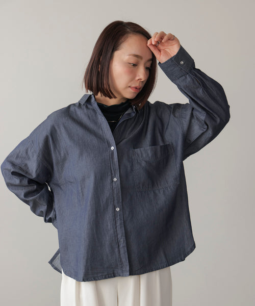 ゆったりとしたシルエットは、体のラインを拾いすぎず大人の余裕を感じさせてくれるデザイン。 丈感も長すぎず短すぎず、パンツにもスカートにも合わせやすい“ちょうどよさ”が魅力です。 気温やスタイルに合わせて前を閉じても、軽く羽織っても決まる2WAYタイプ。 冬はニットのインナーとして着れば、ほんのり透けるデニムの質感がコーデに奥行きをプラス。 夏はタンクトップやキャミソールの上にラフに羽織るだけで、こなれたムードが生まれます。 季節や気分に寄り添ってくれるから、クローゼットにあると自然と手に取ってしまう万能アイテムです。