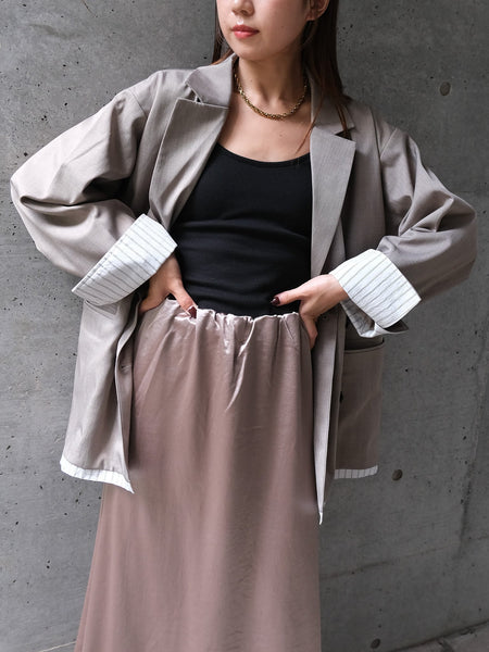 トレンド感溢れるレイヤード風ジャケット。袖口と裾のストライプ柄が程よくカジュアル見えし、デイリーシーンで使いやすい一着です。オーバーサイズでゆったりと羽織ることができ、ロングシーズンご着用いただけます。