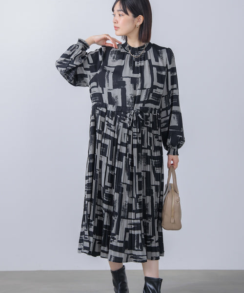 ブロック柄プリーツワンピース