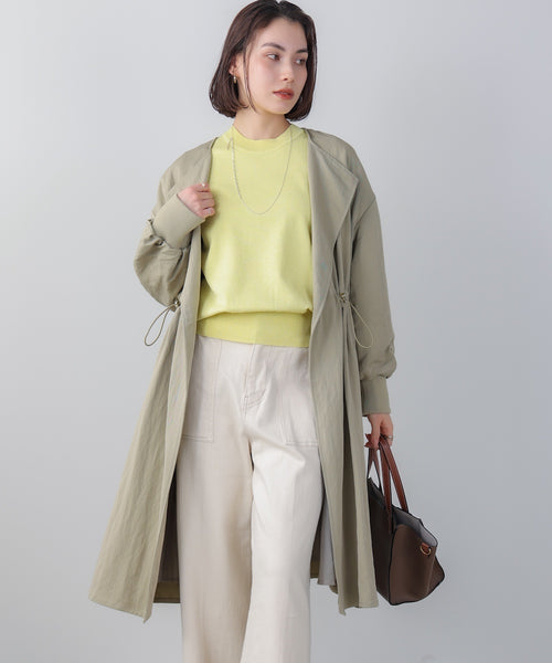 毎日の装いを大人っぽく引き上げてくれる、マットカルゼコート。落ち着いた表情の素材感が、シンプルなコーデにも自然な存在感をプラスします。前を留めずに着る着流しデザインは縦のラインを強調し、すっきり見えも◎。袖口はリブ仕様なのでかたくなりすぎず、カジュアルミックスの着こなしにも好相性です。ウエストのドローコードをきゅっと結べば、メリハリが生まれ、自然と華奢なシルエットに。きれいめにもカジュアルにも寄り添い、忙しい日常でも頼れる一枚に仕上がっています。