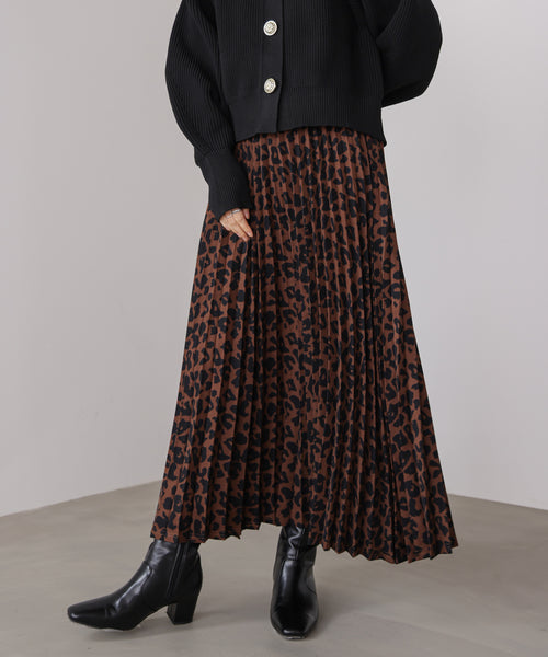 シーズンを先取りする、洗練されたアニマル柄プリーツスカートが登場! 温かみのあるピーチ素材が、これからの季節にぴったりです。 歩くたびに揺れるプリーツが女性らしさを演出し、プリーツが細かいので動きのある美しいシルエットを描きます。 アンクル丈で、足元をすっきりと見せ、スタイルアップ効果も期待できます。