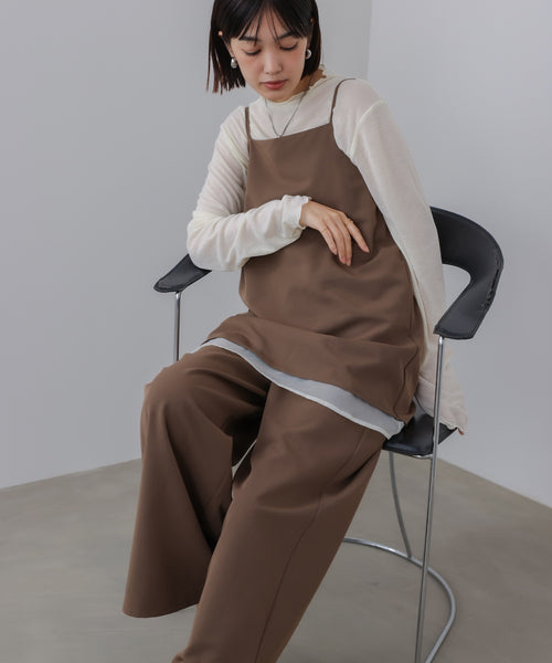 まるでセットアップのような、洗練されたレイヤード風オールインワン。 さらりとしたツイル素材で、シーズンレスな着こなしを実現。 インナー次第で表情を変え、幅広いスタイリングを楽しめます。 体型カバーも叶う、ゆったりシルエットでリラックスした着心地。