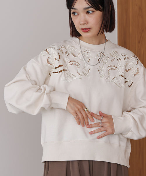 カットワークが印象的な裏毛スウェットがお目見え! 短丈とゆったりとしたシルエットが、スタイルアップを叶えます。 柔らかな着心地で、どんなボトムスにも合わせやすいのも魅力。 インナー次第で様々な表情が楽しめるので、レイヤードスタイルも自由自在。一枚で着こなしの幅が広がる、ヘビロテ間違いなしのアイテムです。