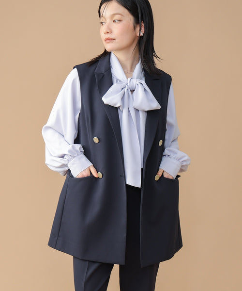 インナー次第で表情を変えられ、ボウタイブラウスやレーストップスを合わせればセレモニーシーンにも最適です。