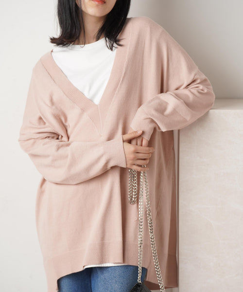 シャープなVネックなので、トレンドスタイルも大人っぽく仕上がります。