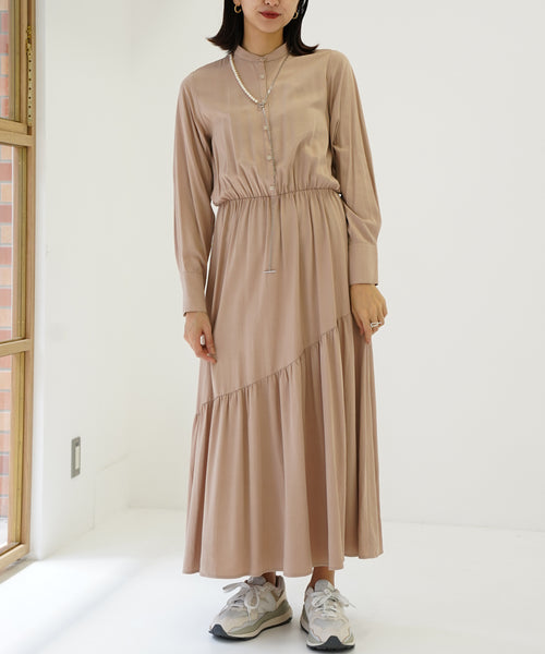 CIEL'AIR定番のニットとのセットワンピース。セパレートでも使えて、着回し力抜群な1着です。インナーのブラウスOPはティアードデザインで華やかな印象に。気温調節にも最適でしめつけもなくご着用いただけますので、移動の多いトラベルシーンでも活躍してくれます。